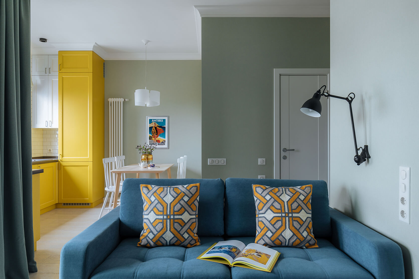 Задача: за основу взять психологический портрет заказчика, состоящий из пары без детей. Максимально задействовать каждый квадратный метр. Интерьер в современном стиле, яркий, энергичный, запоминающийся.