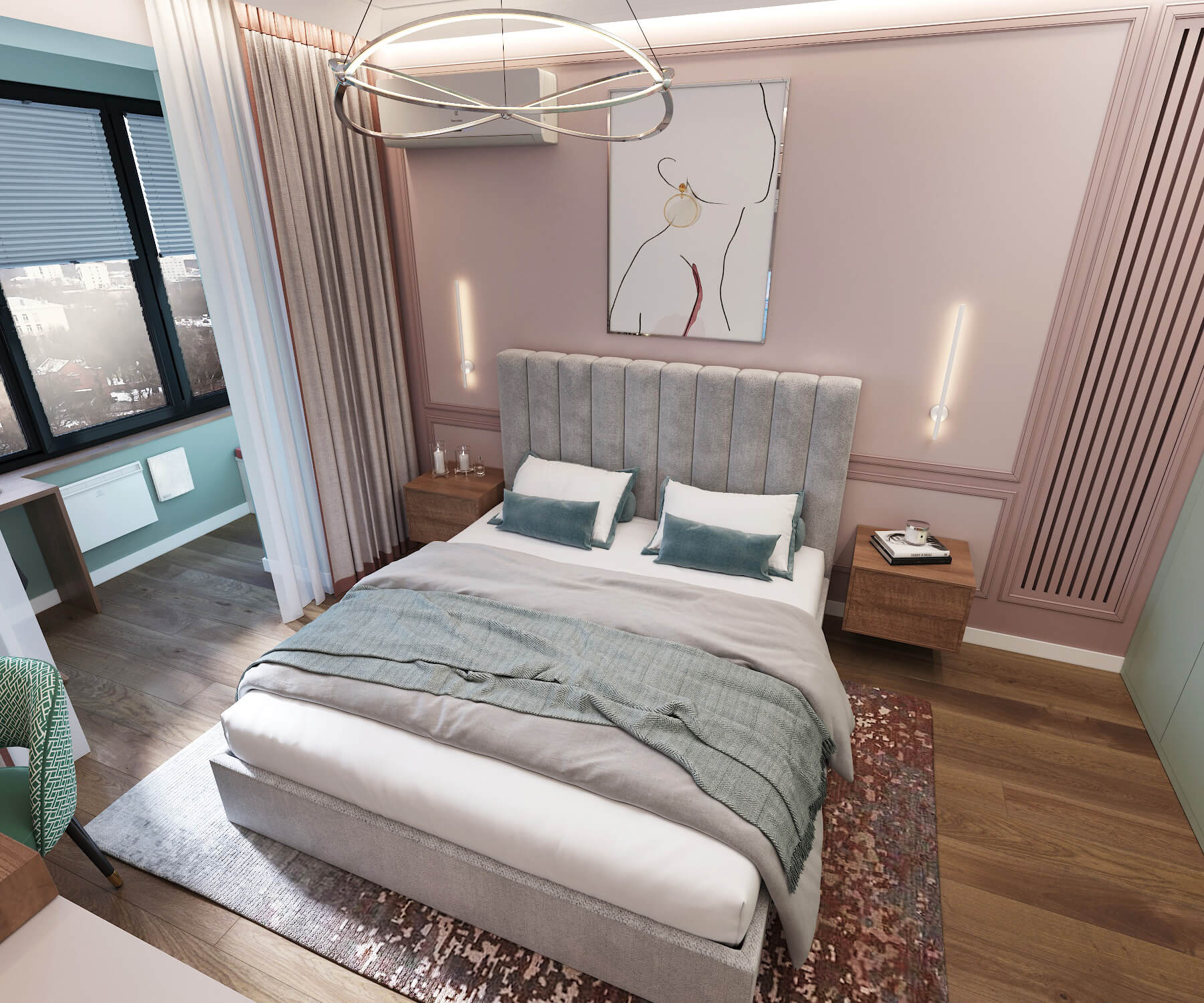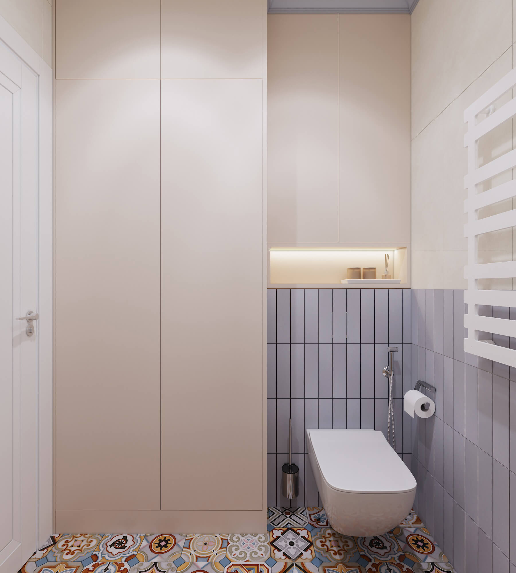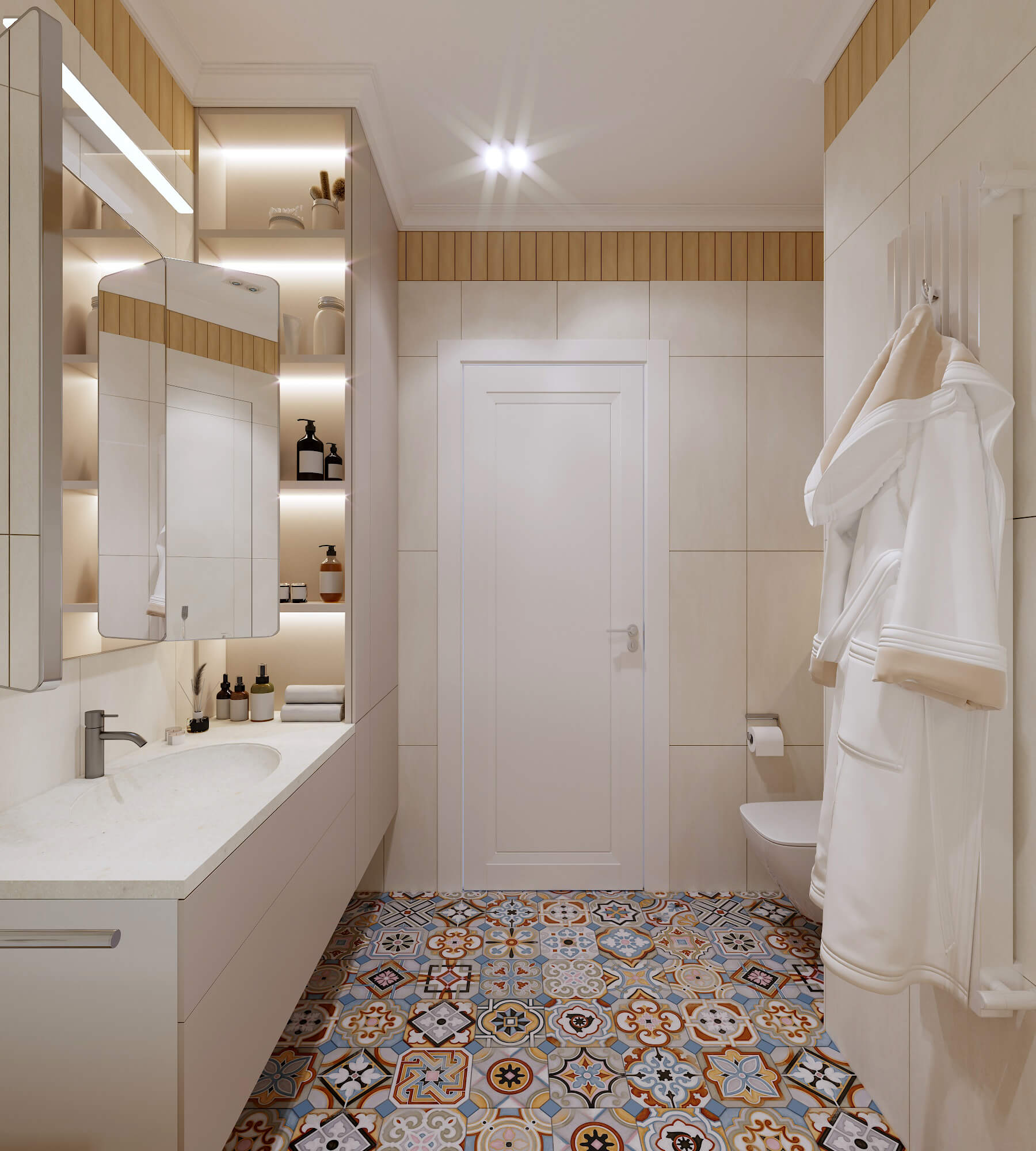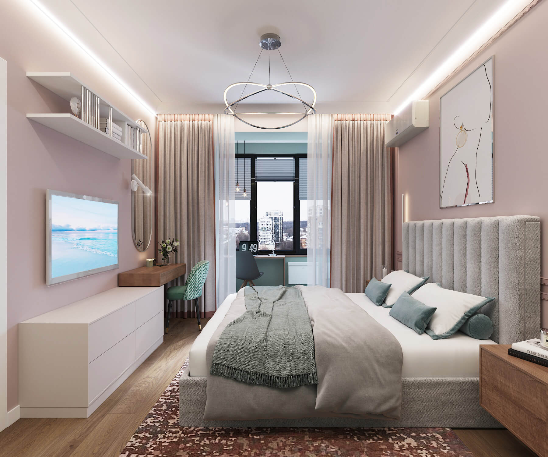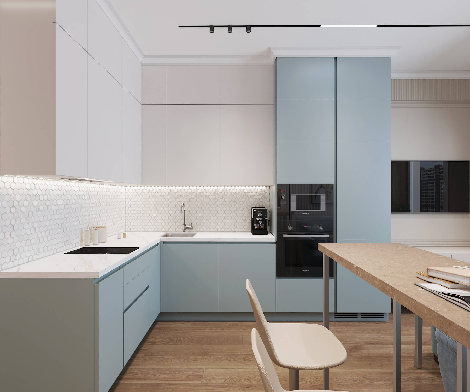 Факты: начали работу над проектом до получения ключей, так как застройщик предоставил планировку со всеми размерами. Дизайн согласовали до замеров, а чертежи выполнили — после. После замера размеры изменились не значительно, что не отразилось на дизайне.
