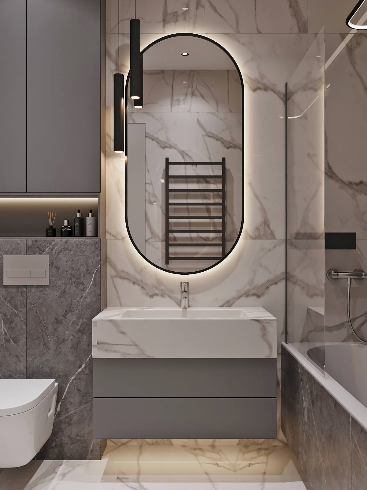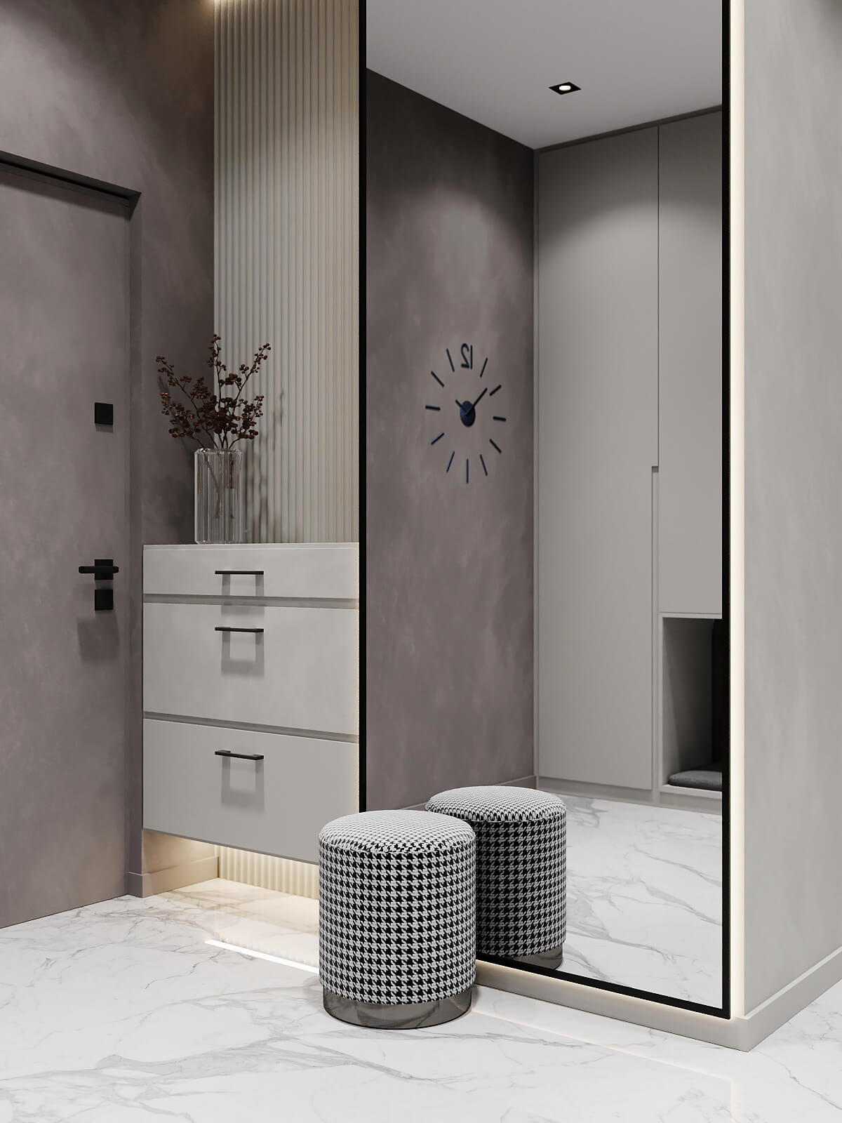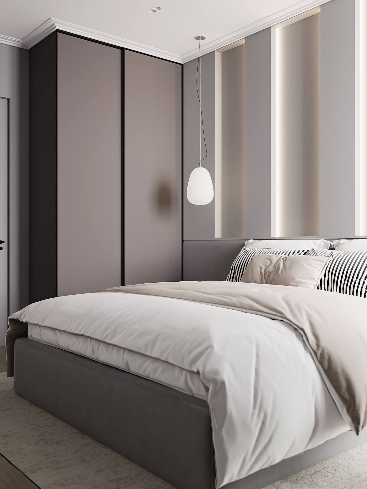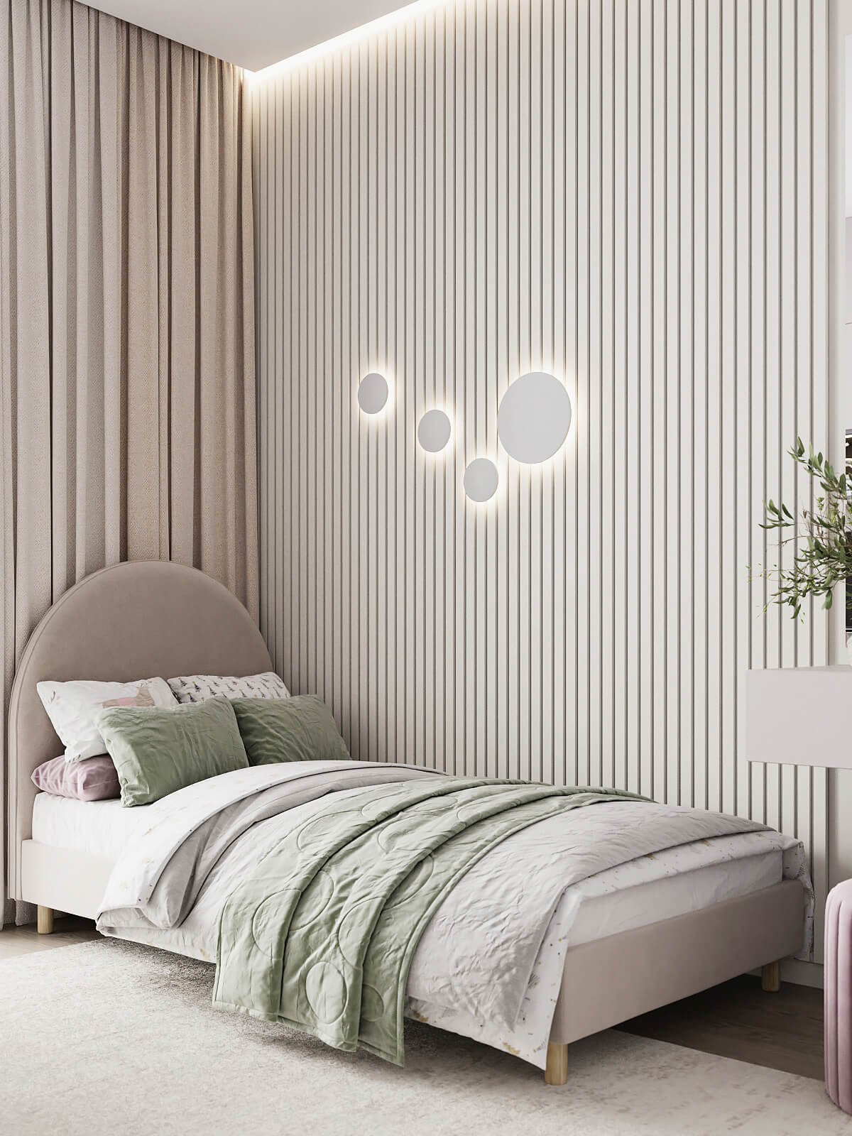 Задача: Создать нейтральный современный интерьер с контрастными элементами, отразить в планировке комнаты для подростков (мальчика и девочки), пожеланием было наличие мастер-ванной комнаты.