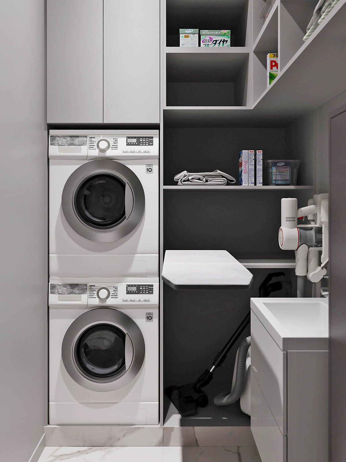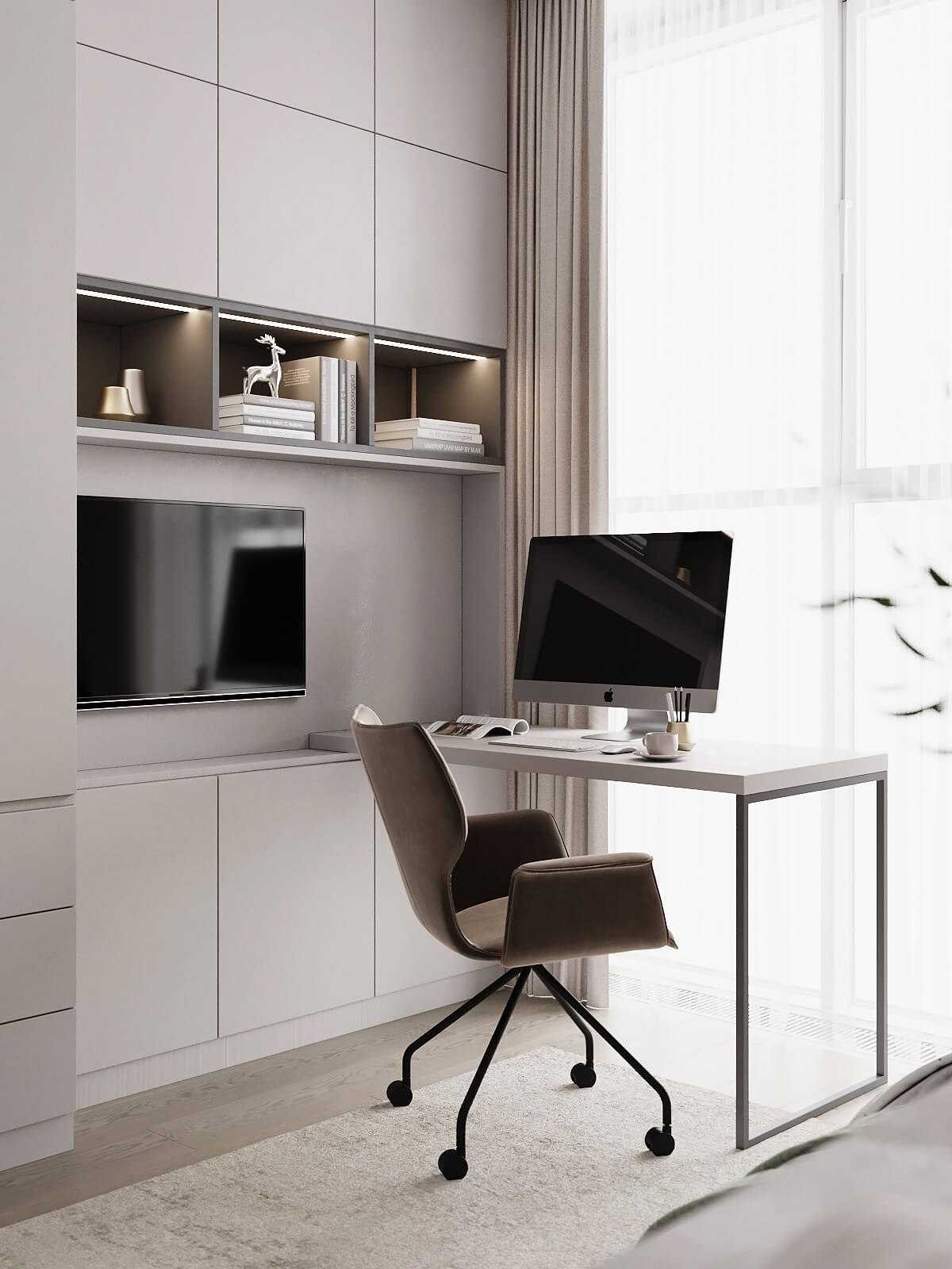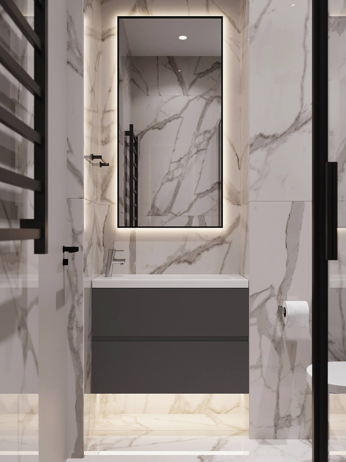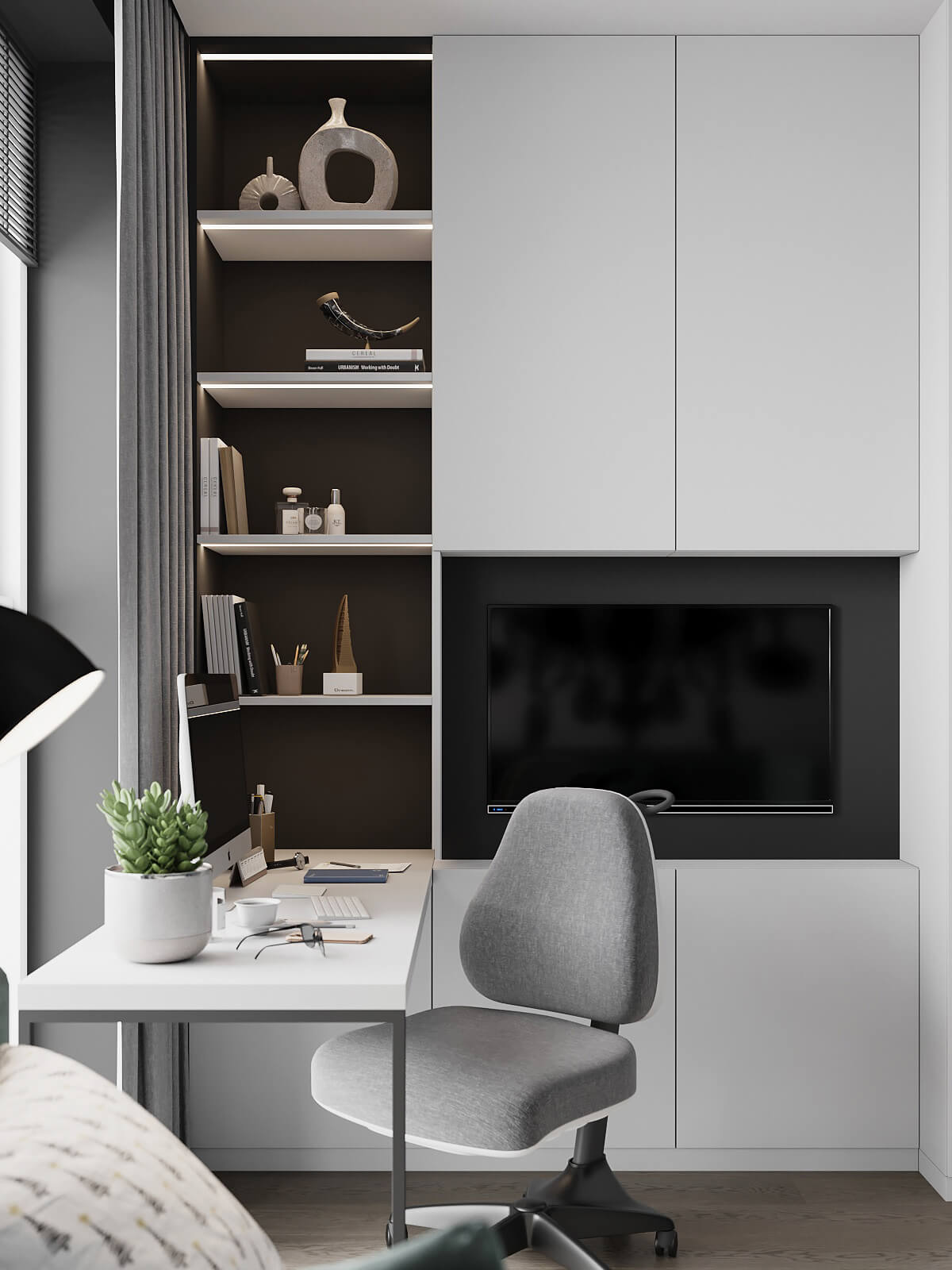 Задача: Создать нейтральный современный интерьер с контрастными элементами, отразить в планировке комнаты для подростков (мальчика и девочки), пожеланием было наличие мастер-ванной комнаты.