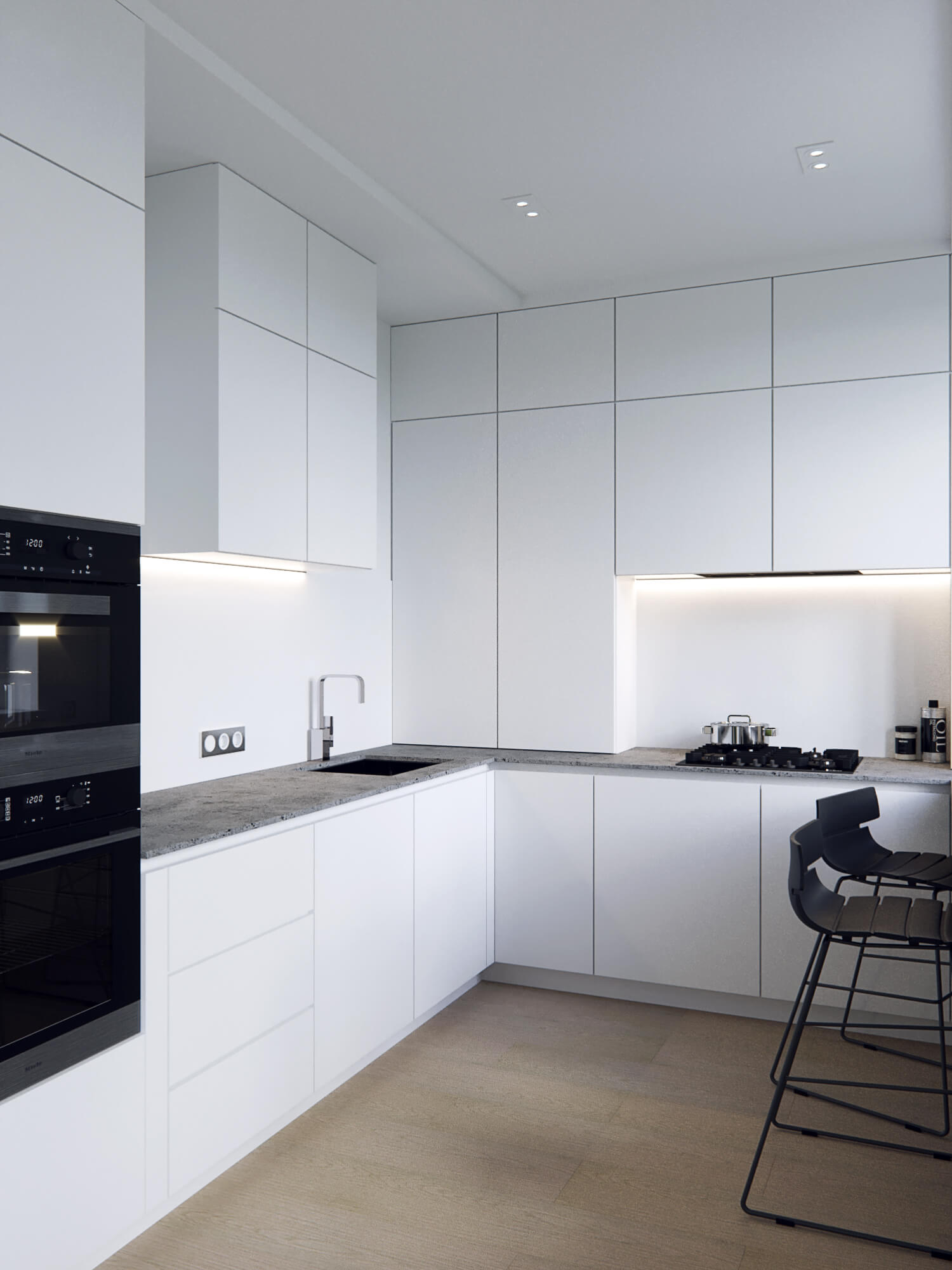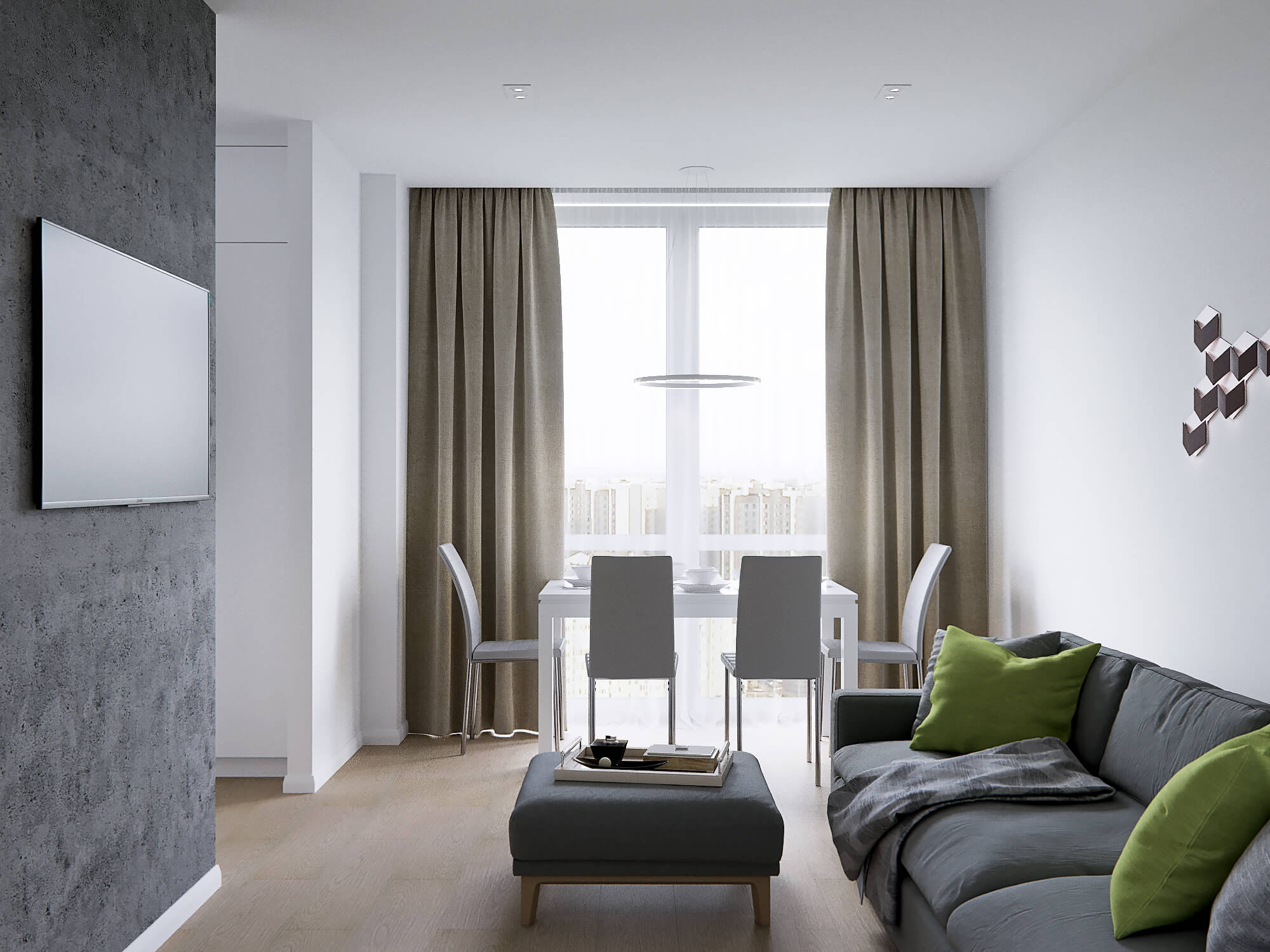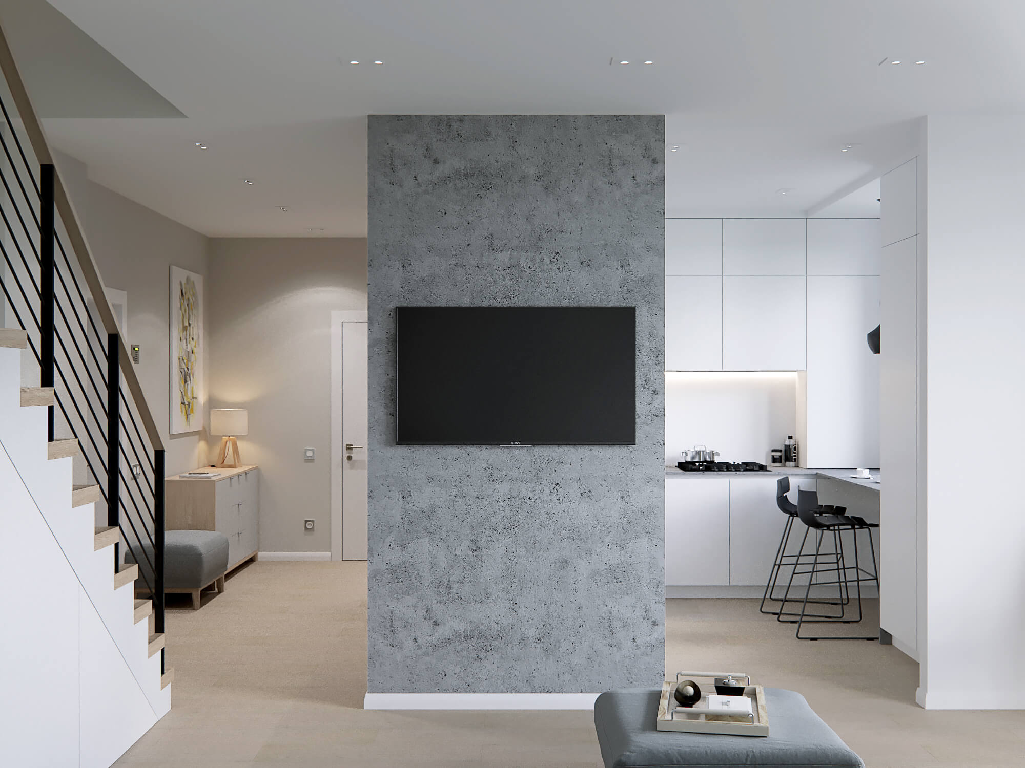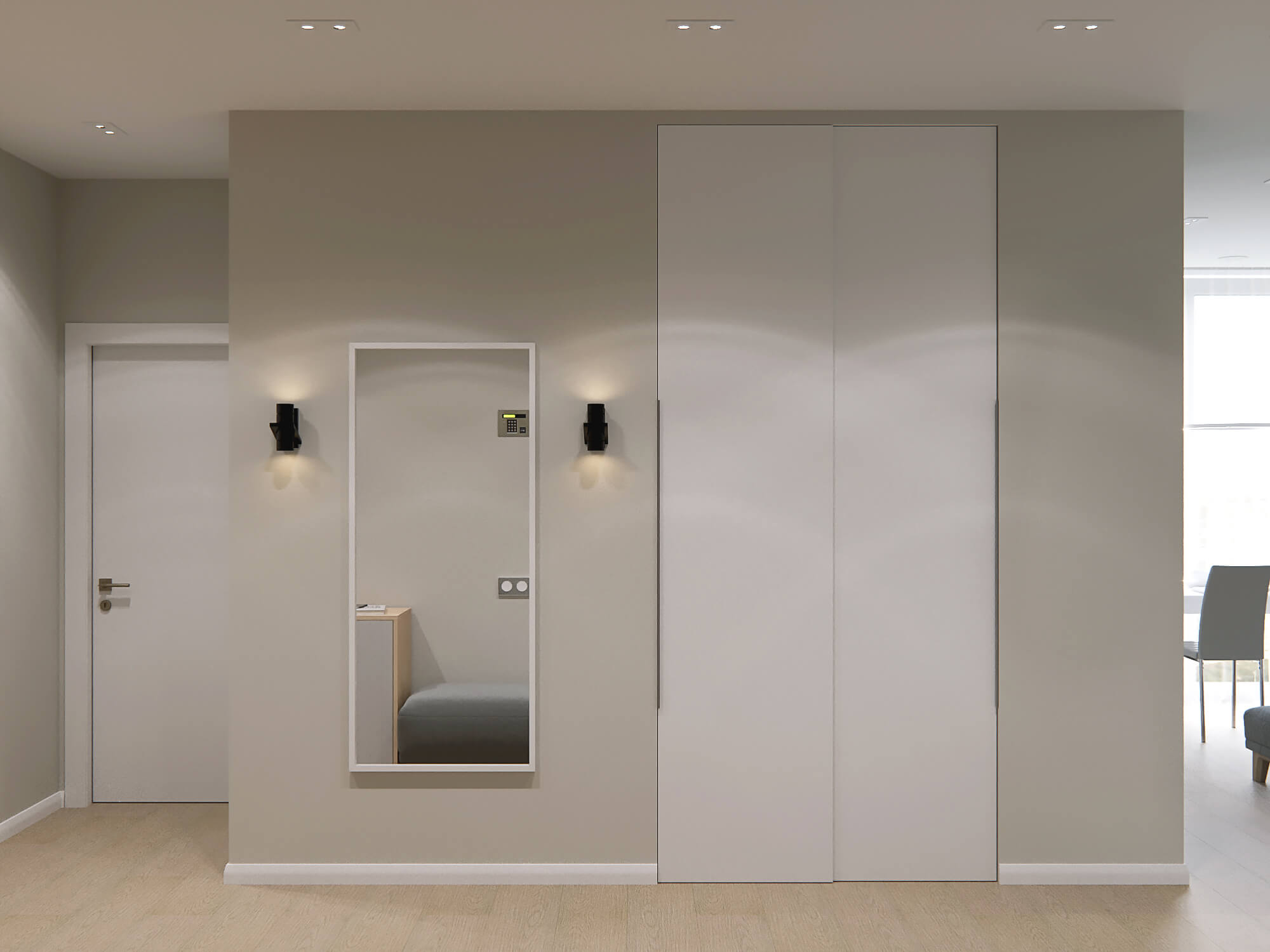 Задача: минимализм, интерьер свободный от декора и перегруженности. Больше пространства и воздуха. Нейтральная спокойная цветовая гамма, без ярких акцентов.