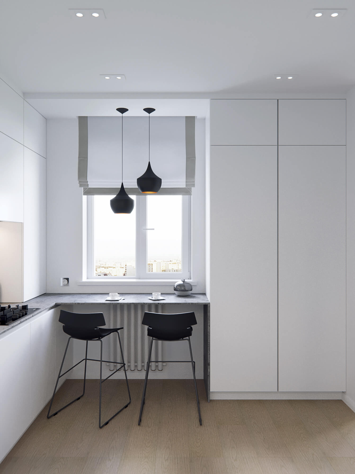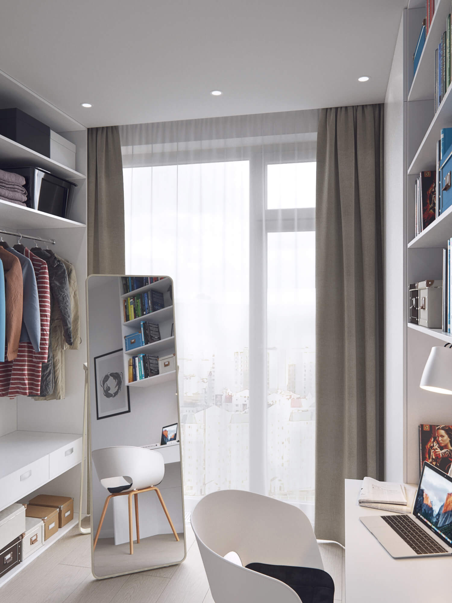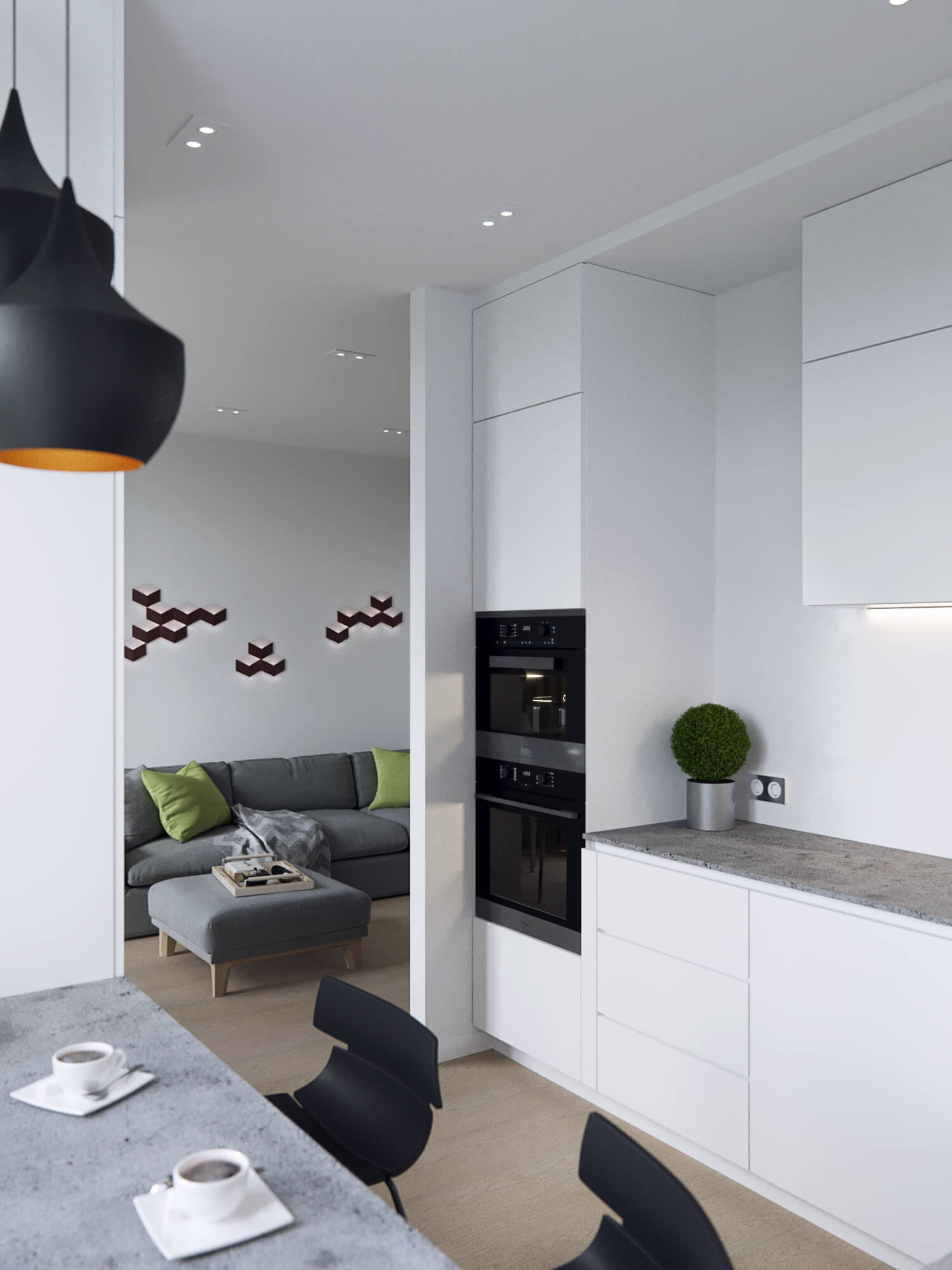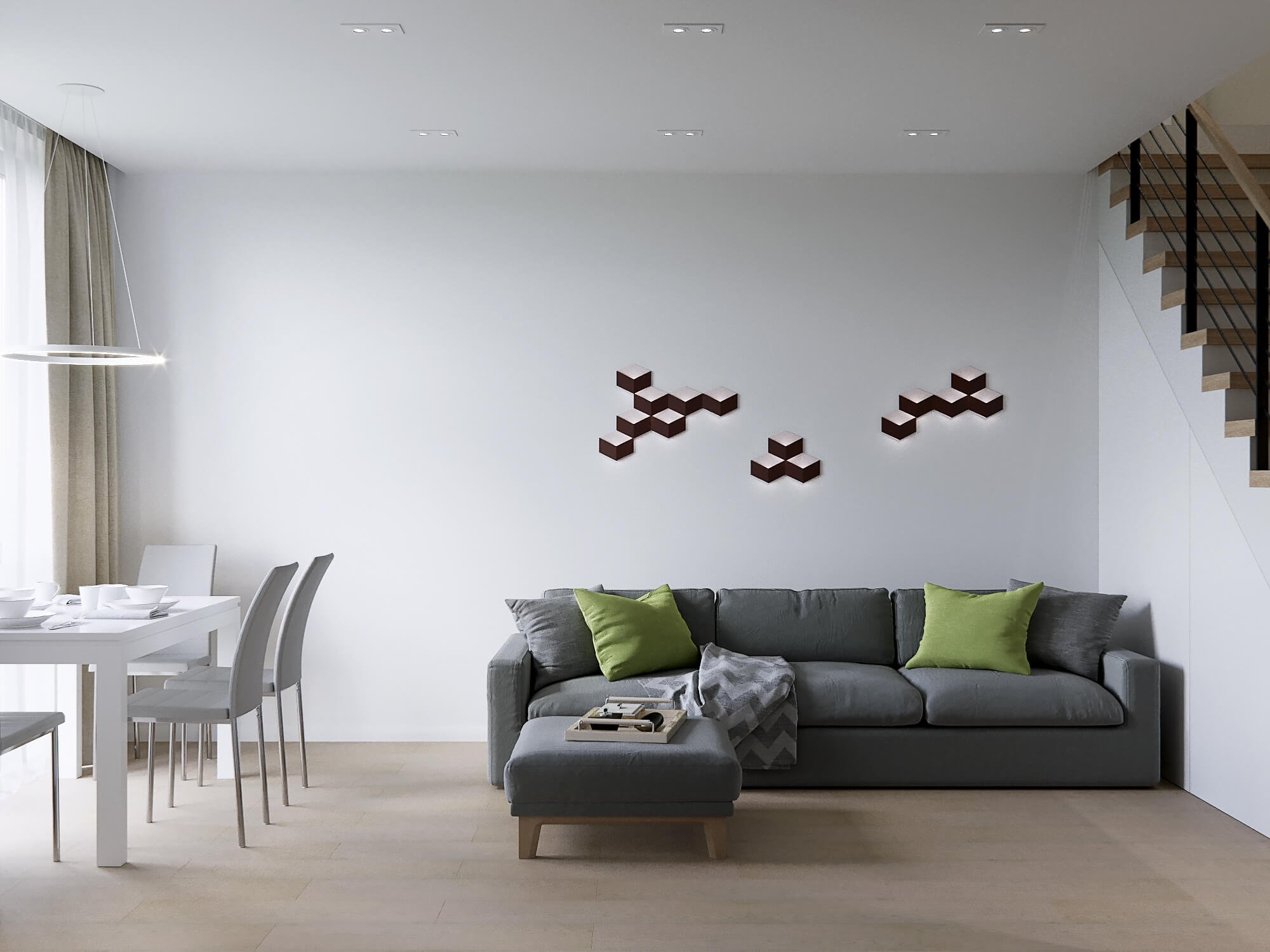 Задача: минимализм, интерьер свободный от декора и перегруженности. Больше пространства и воздуха. Нейтральная спокойная цветовая гамма, без ярких акцентов.