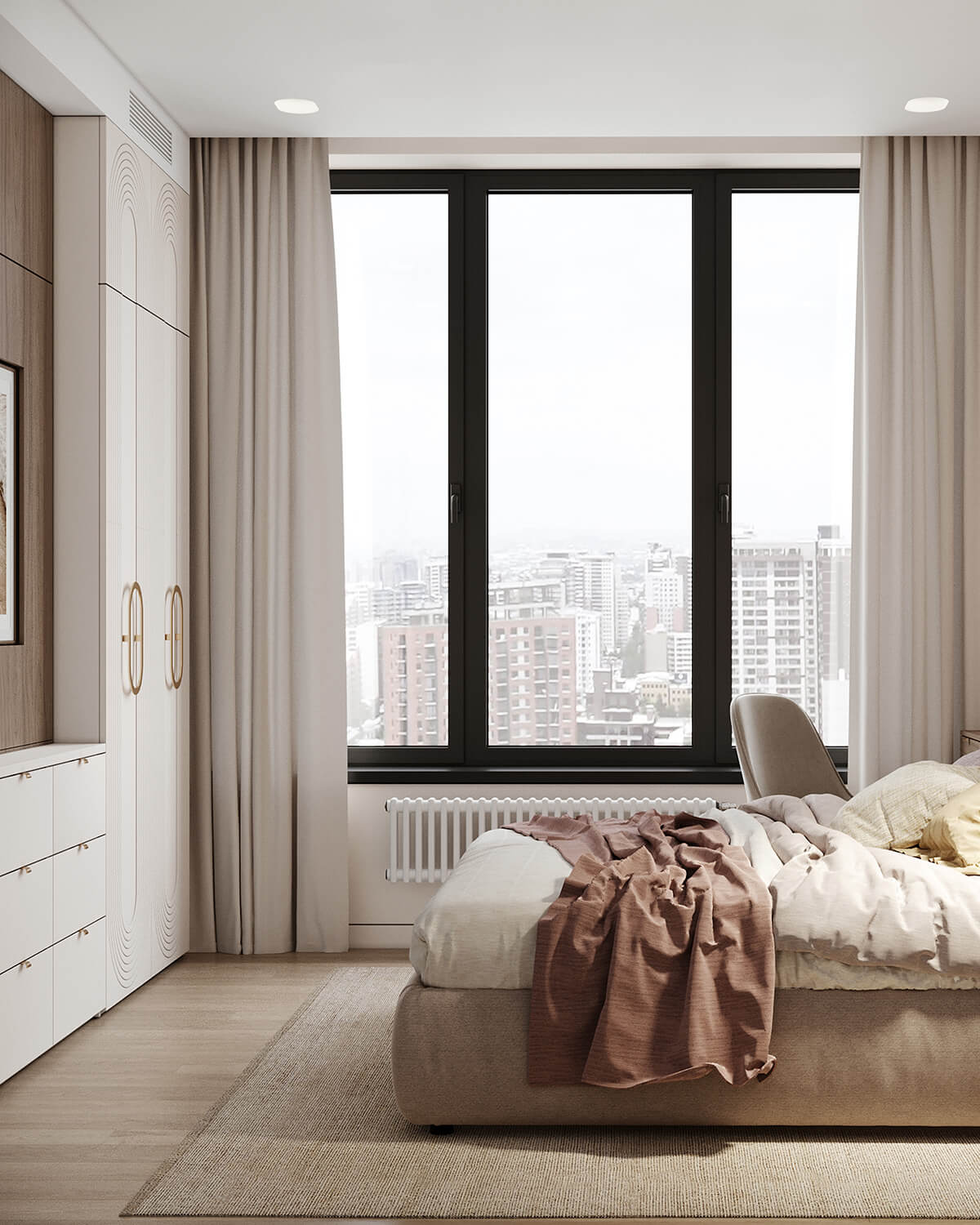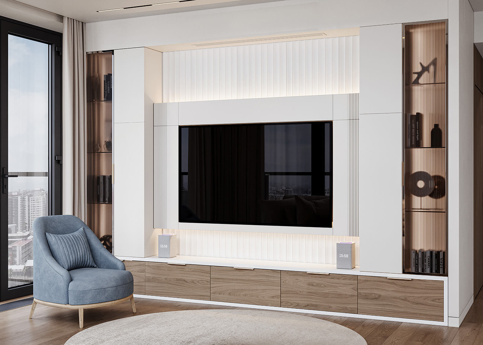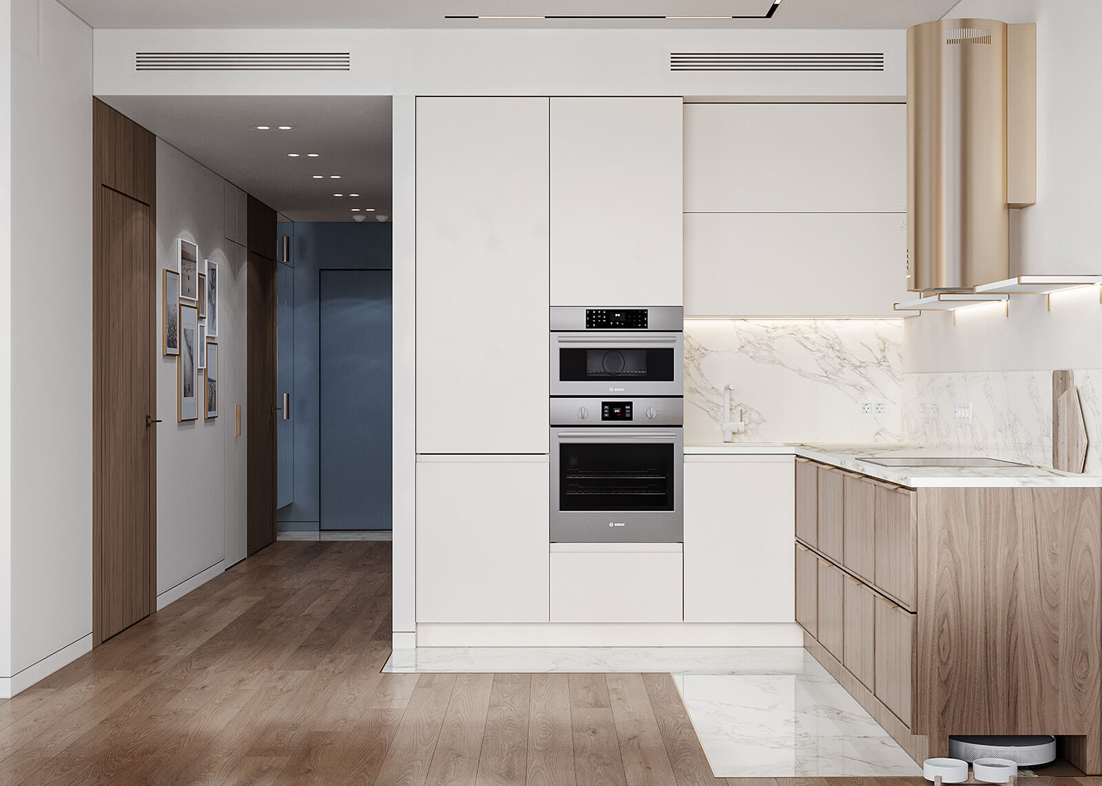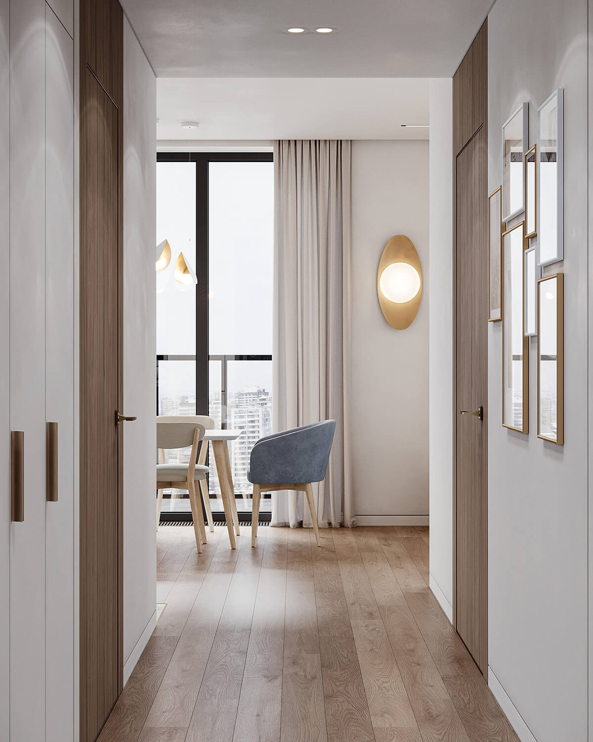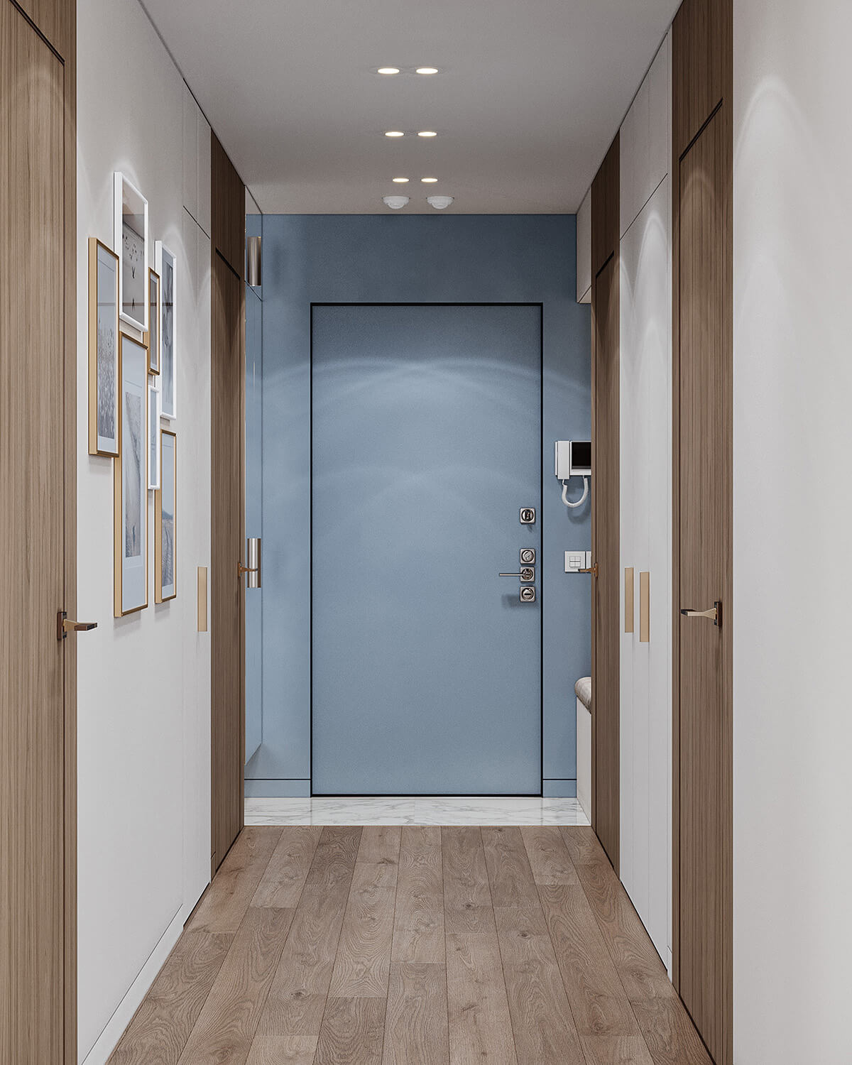 Факты: в этом проекте клиенты акцентировали внимание на системе хранения, во время авторского сопровождение на этапе заказа мебели спланировали зоны хранения по каждому шкафу (где, что будет храниться). Благодаря общей слаженной работы команды (заказчики, строительная бригада, дизайнер, подрядчики) удалось воплотить 3д визуализации в реальность на 99%.