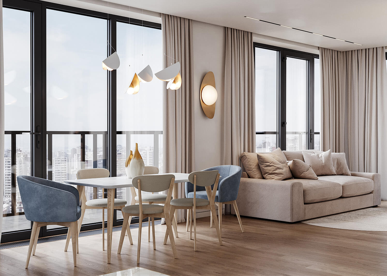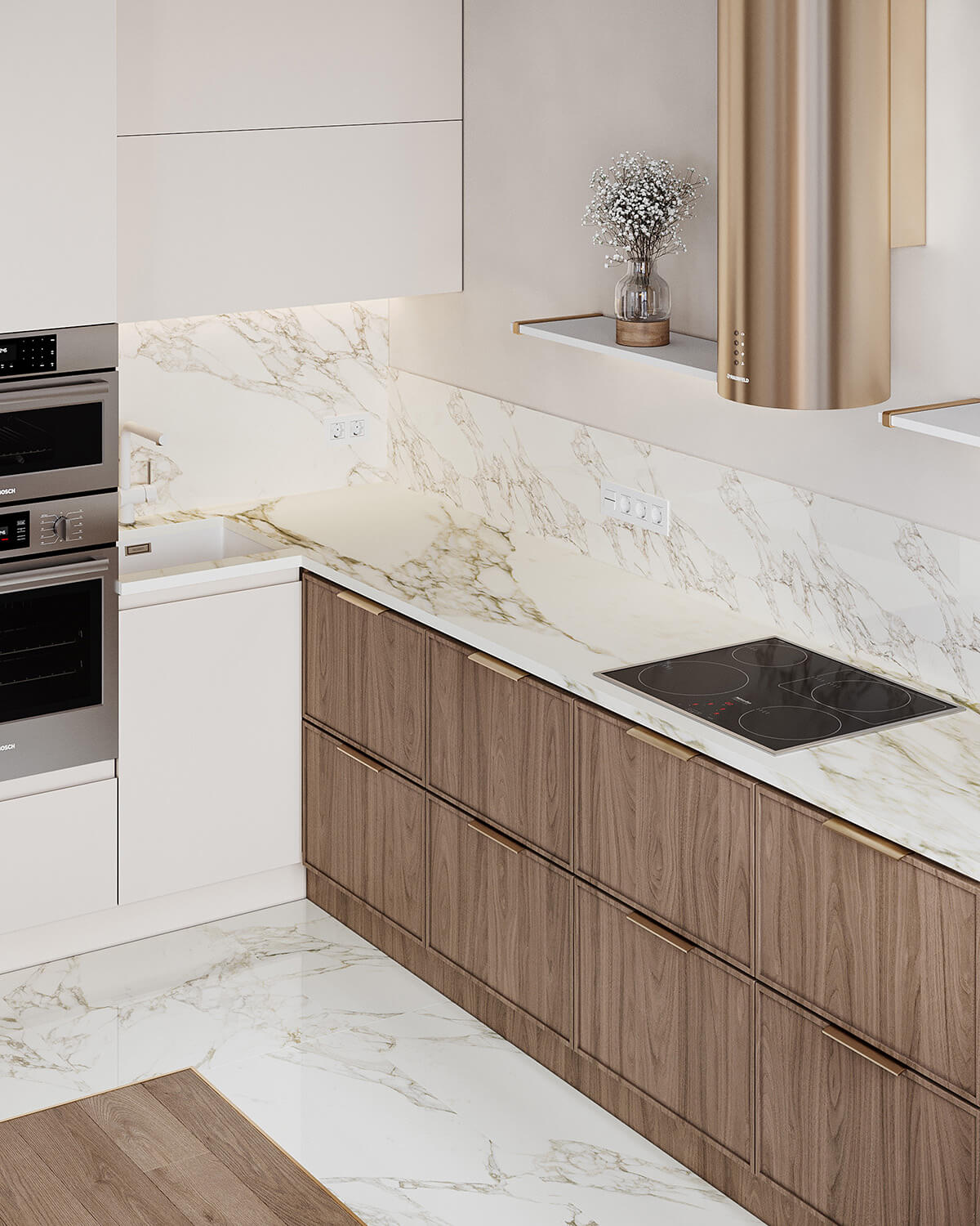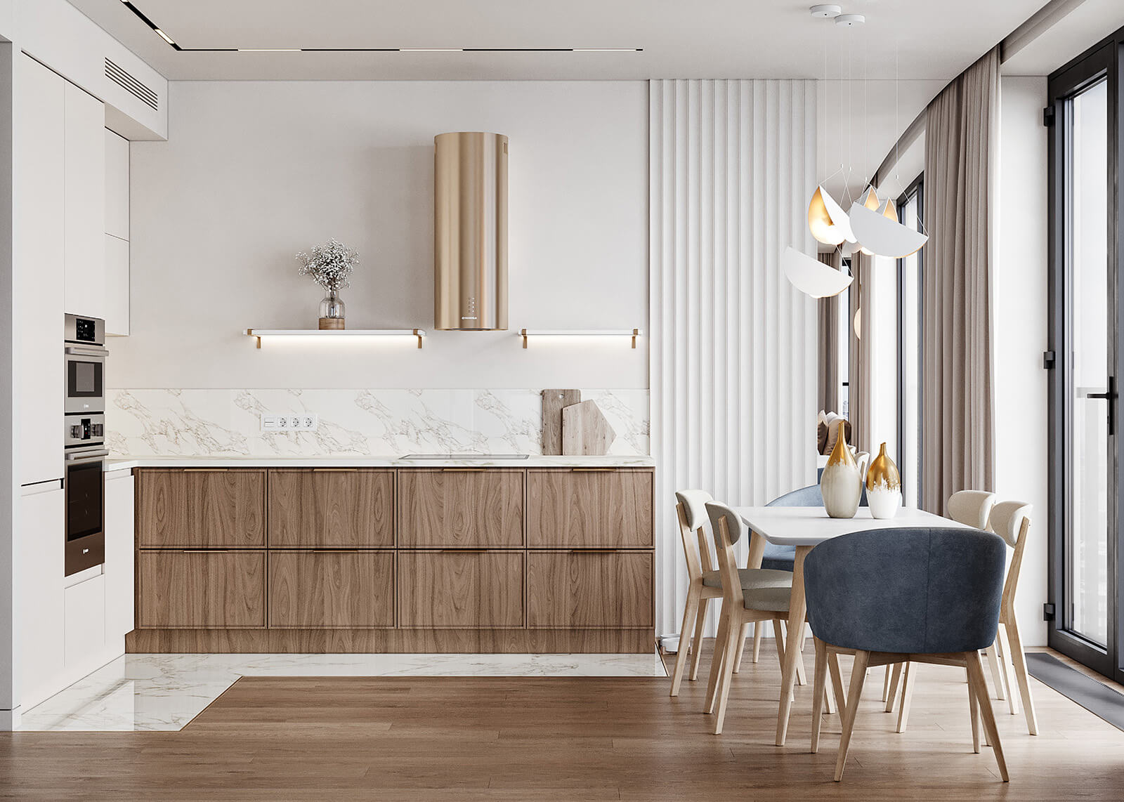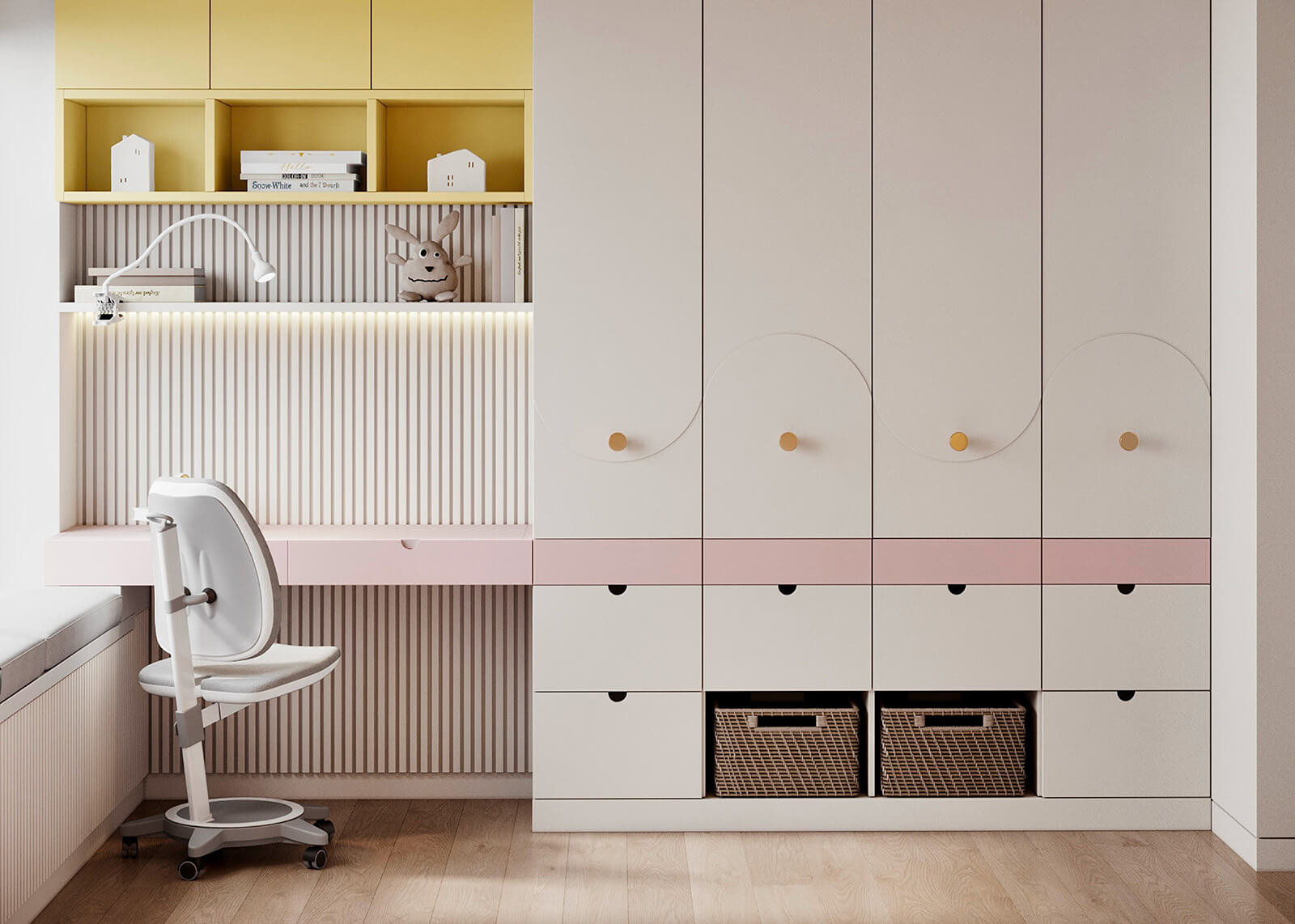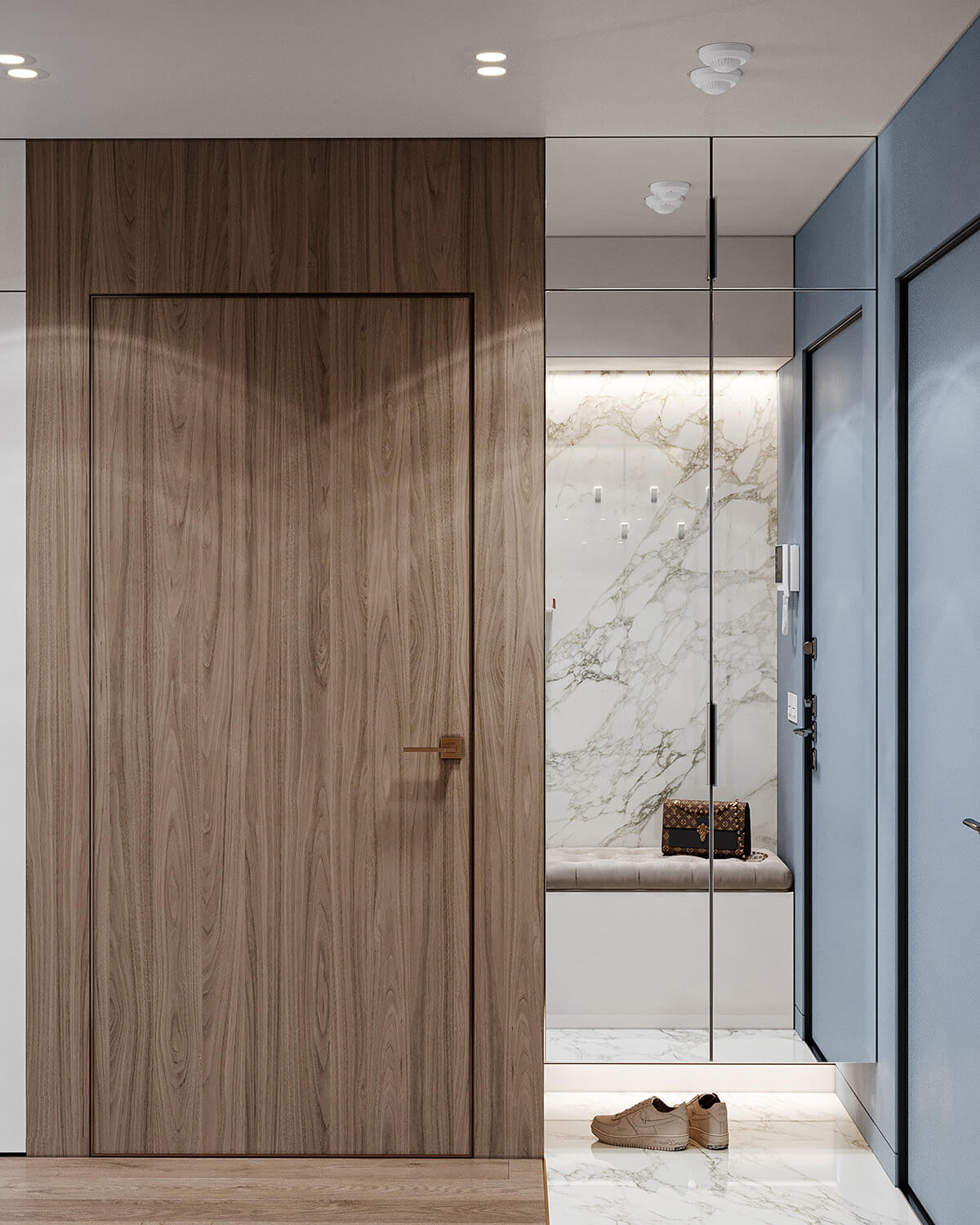 Факты: в этом проекте клиенты акцентировали внимание на системе хранения, во время авторского сопровождение на этапе заказа мебели спланировали зоны хранения по каждому шкафу (где, что будет храниться). Благодаря общей слаженной работы команды (заказчики, строительная бригада, дизайнер, подрядчики) удалось воплотить 3д визуализации в реальность на 99%.