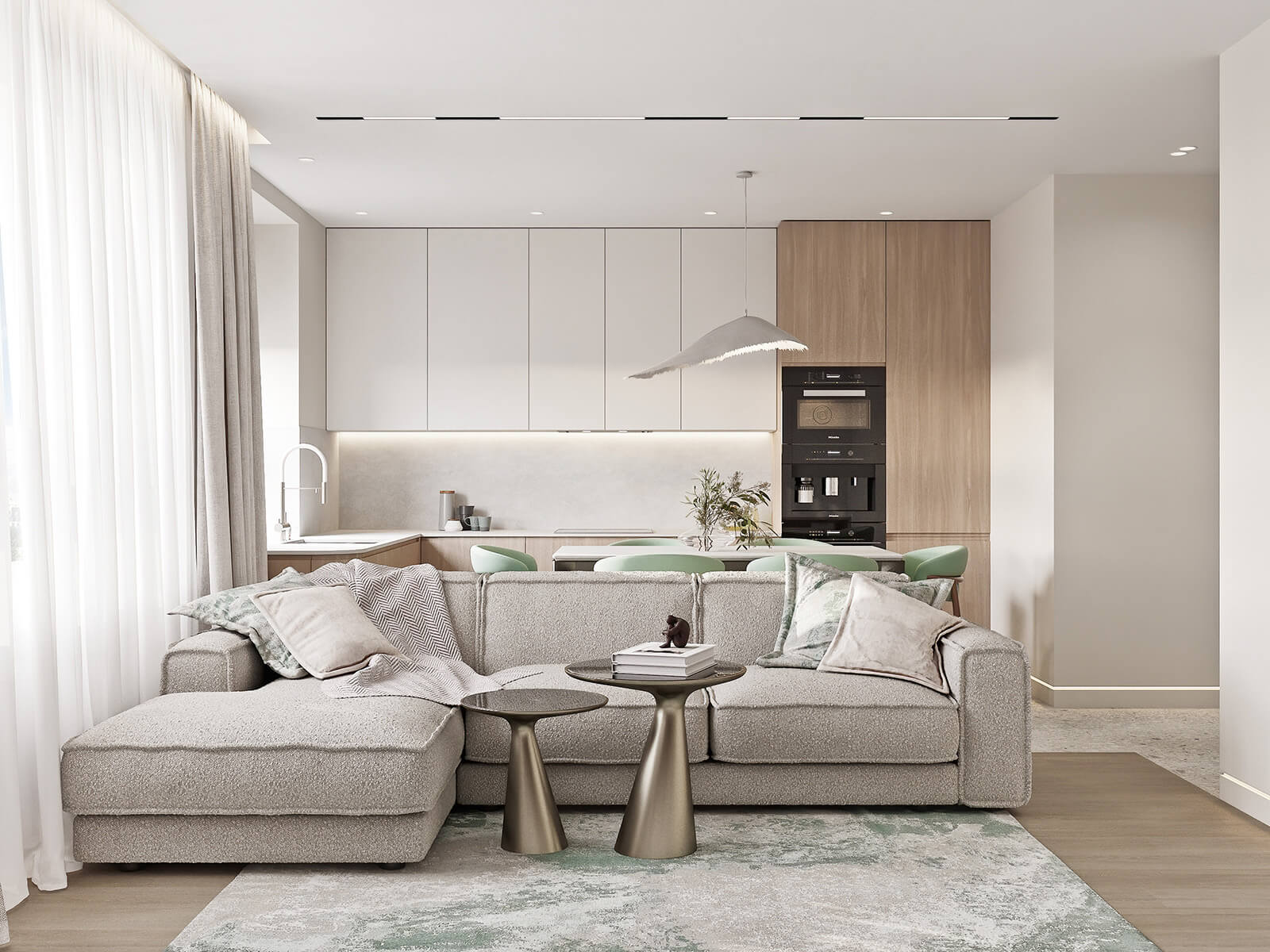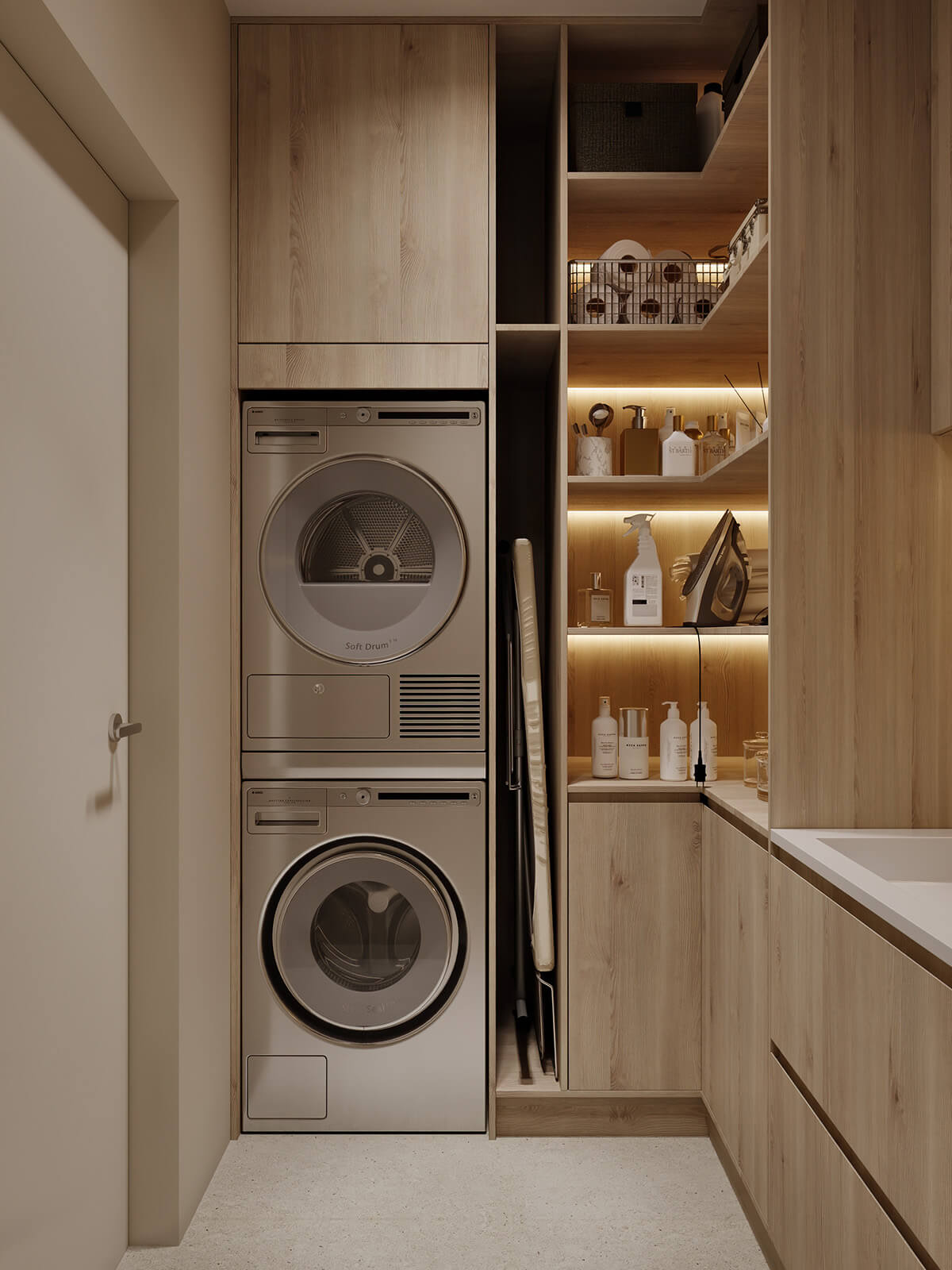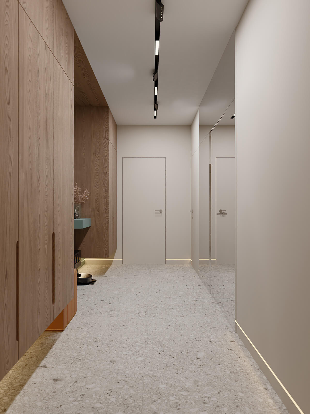 Задача: Объединить две квартиры в одну, создать светлый, спокойный, современный интерьер. Квартира не для постоянного проживания, для кратковременного. Предусмотреть помывочную-душ для собаки.