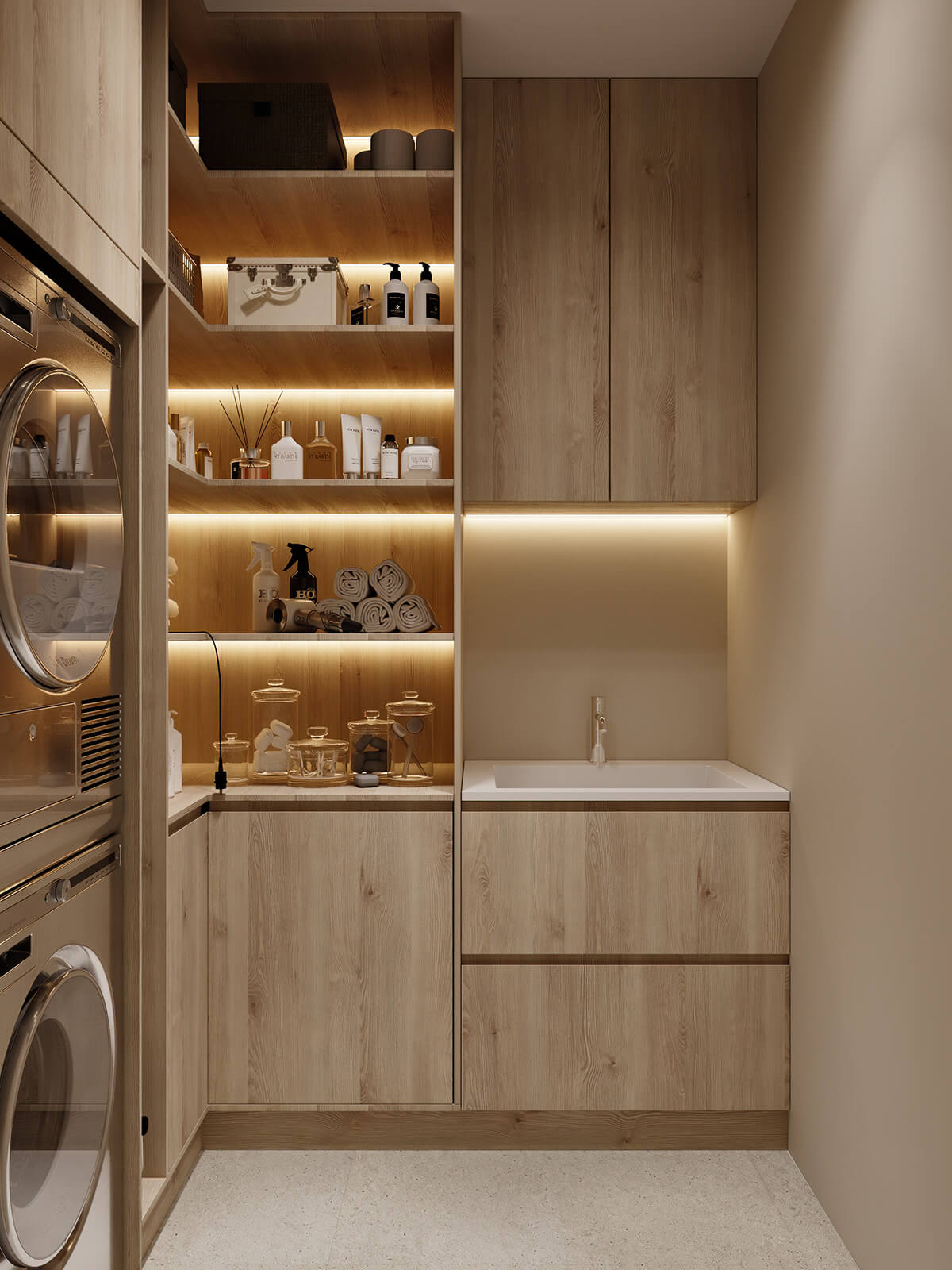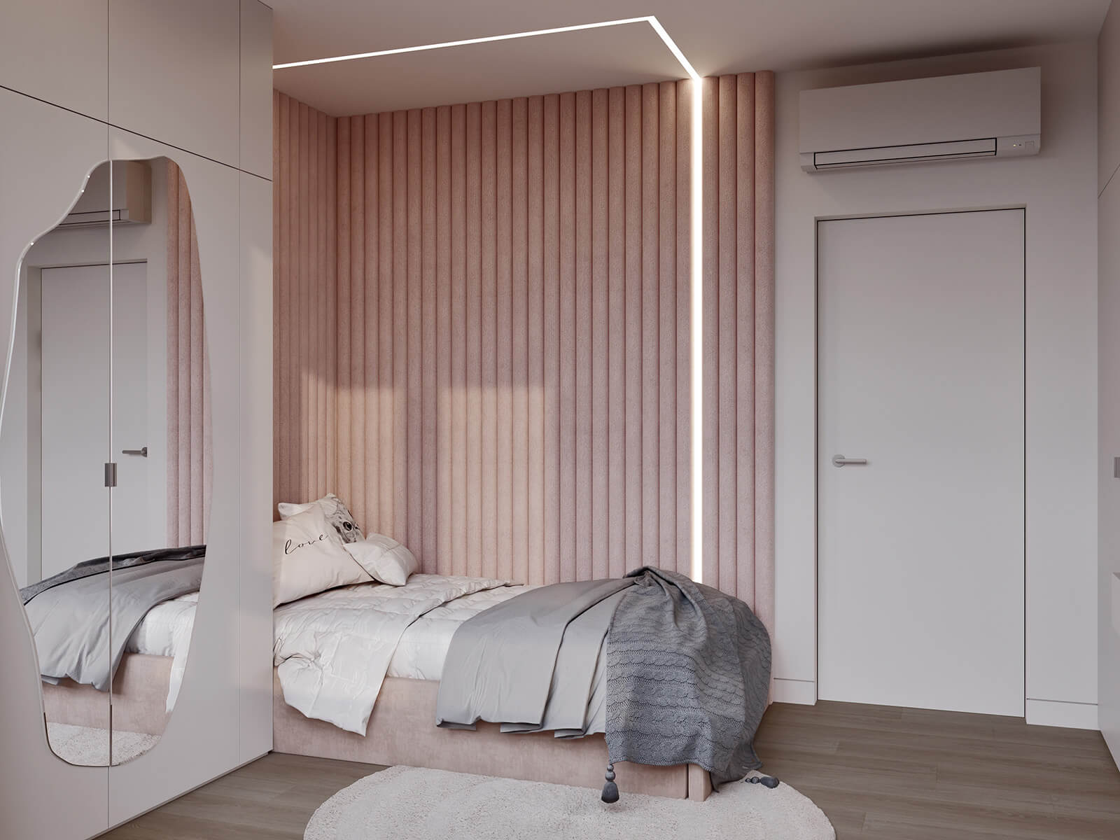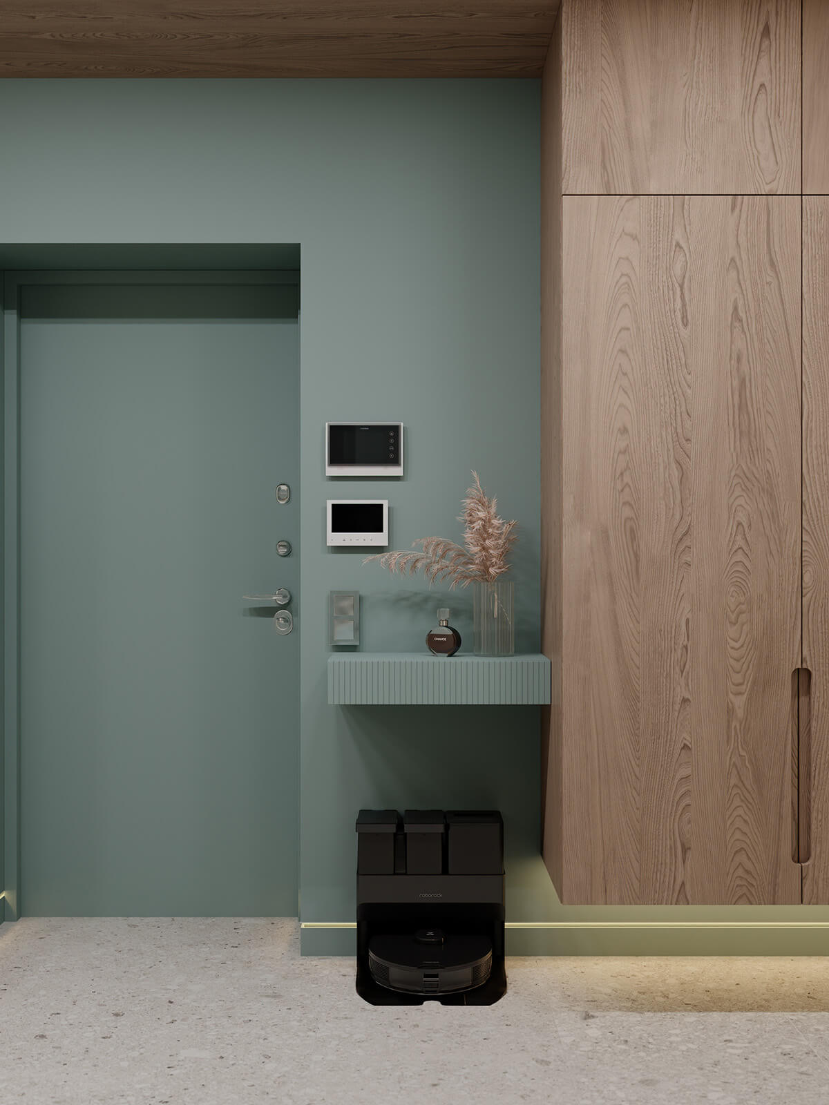 Задача: Объединить две квартиры в одну, создать светлый, спокойный, современный интерьер. Квартира не для постоянного проживания, для кратковременного. Предусмотреть помывочную-душ для собаки.