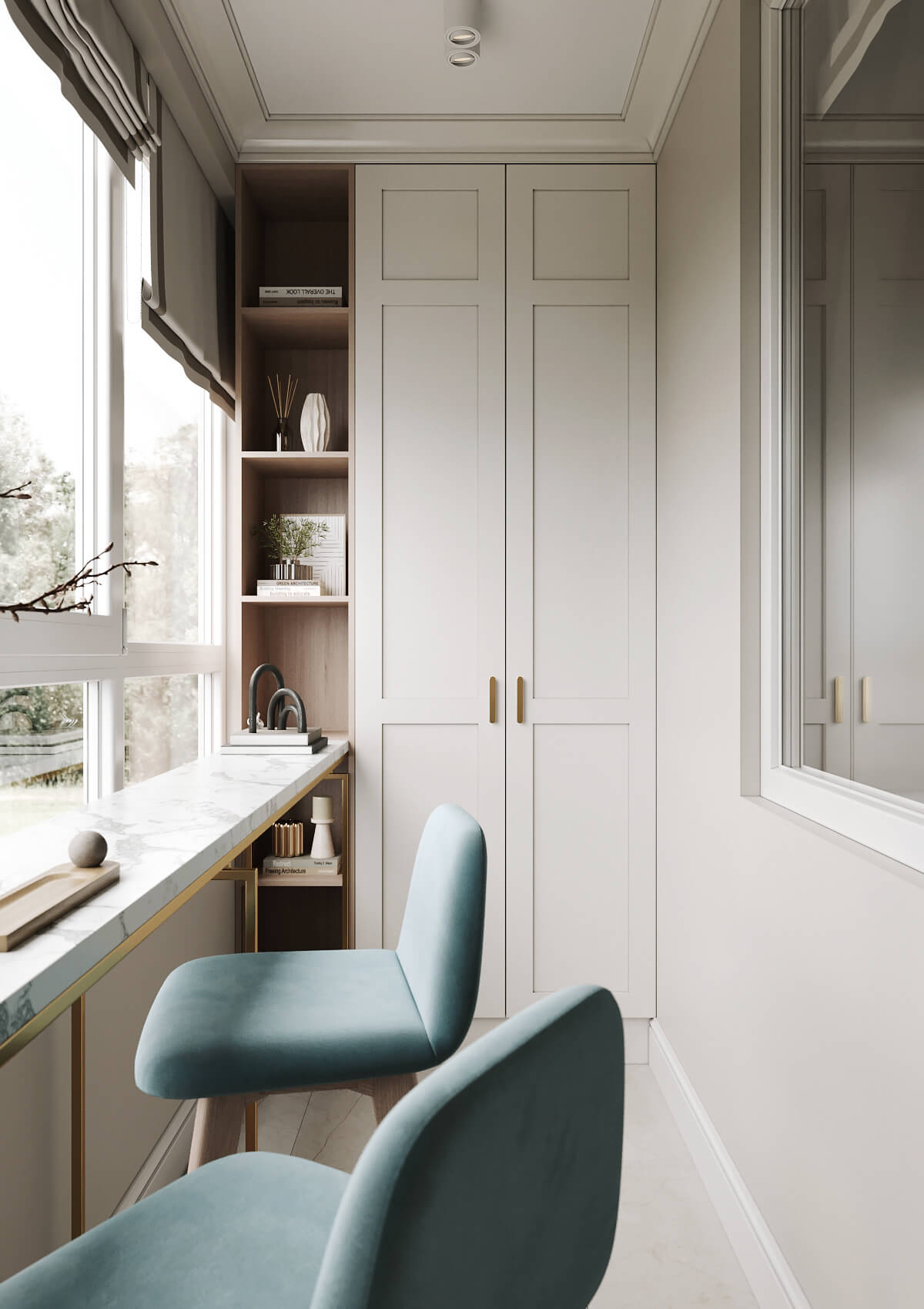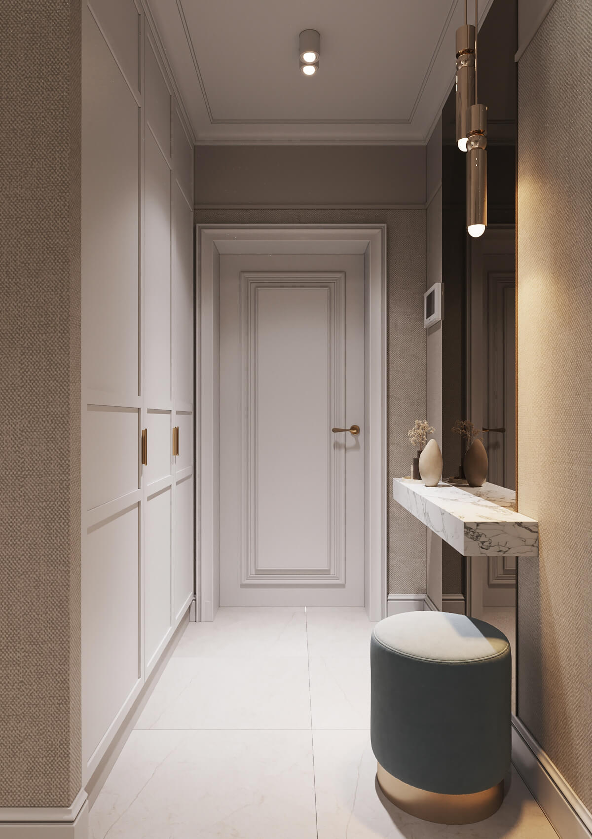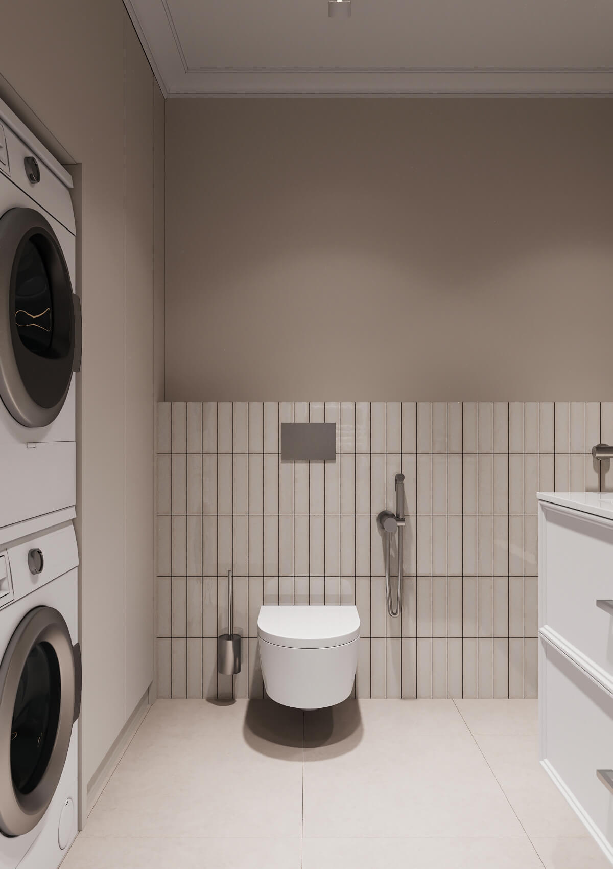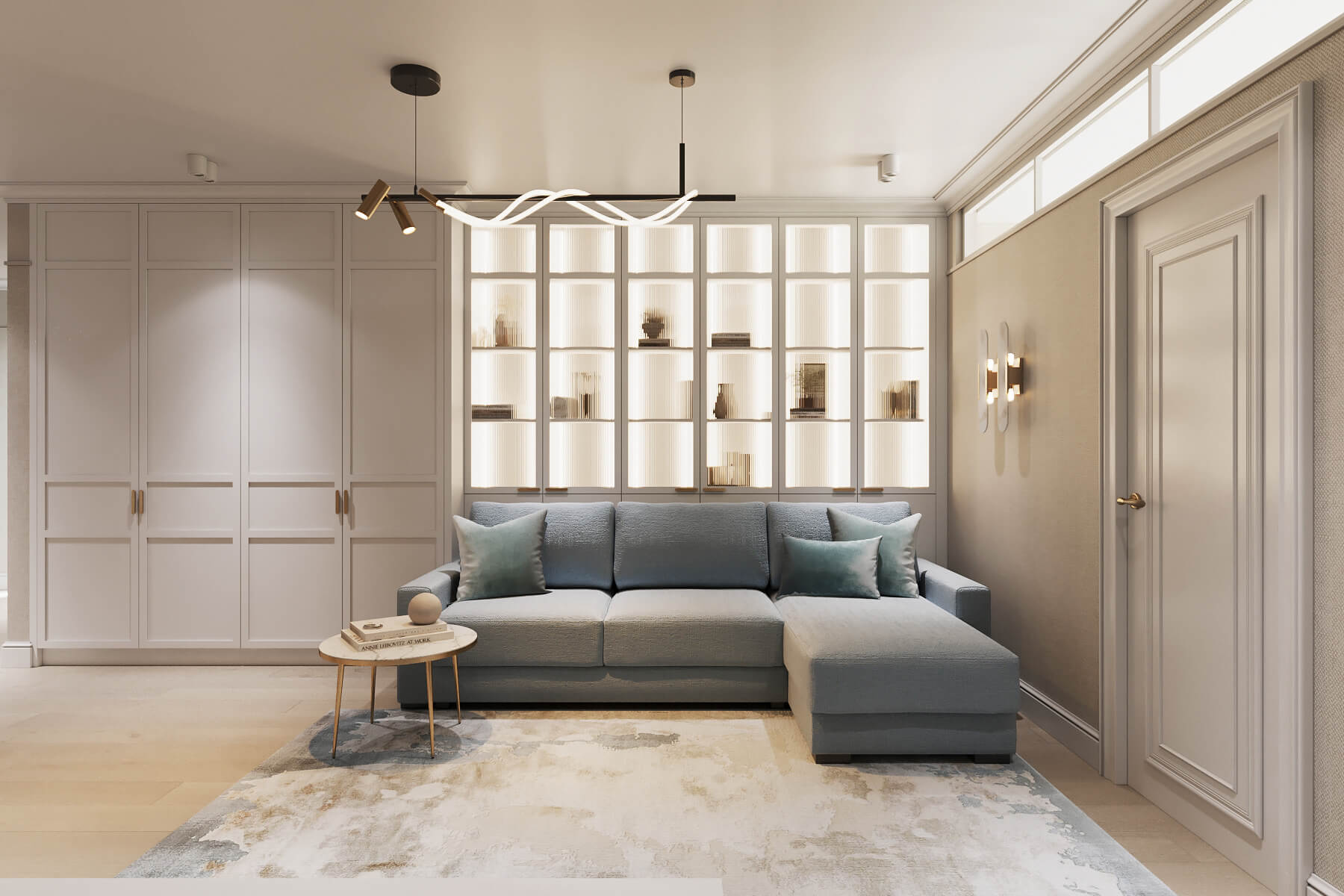 Задача: создать светлый, спокойный интерьер с элементами легкой классики, задействовать две лоджии в качестве рабочего кабинета и зоны отдыха. В одном санузле сделать постирочную и повымочную для собаки.