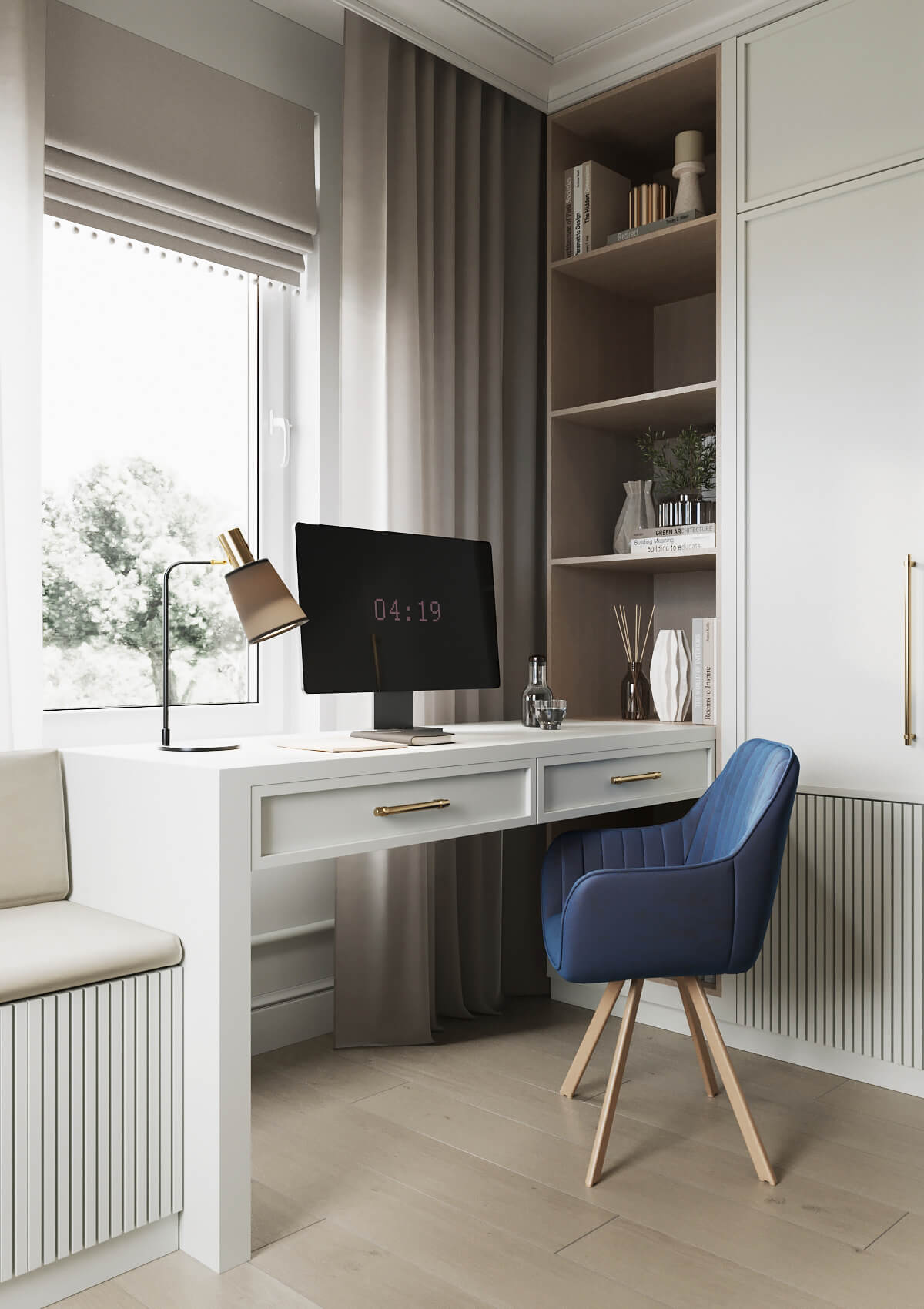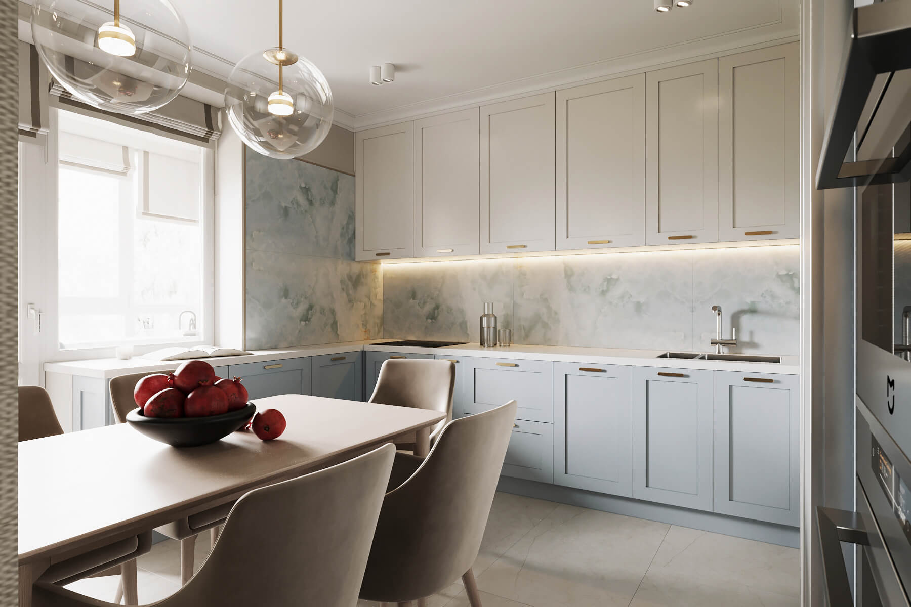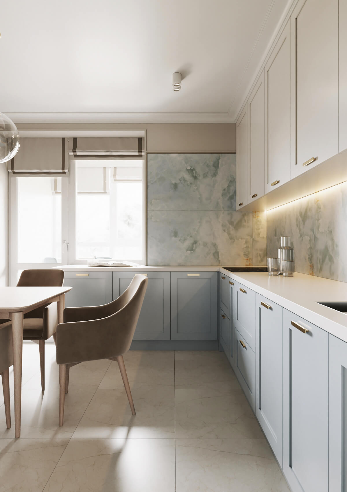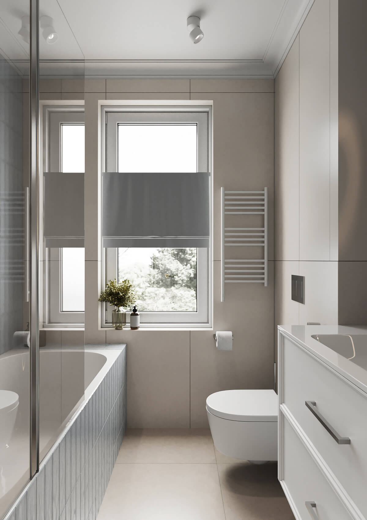 Задача: создать светлый, спокойный интерьер с элементами легкой классики, задействовать две лоджии в качестве рабочего кабинета и зоны отдыха. В одном санузле сделать постирочную и повымочную для собаки.